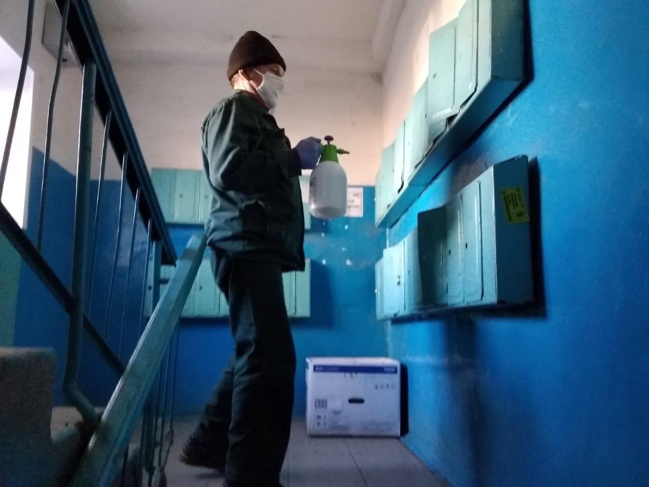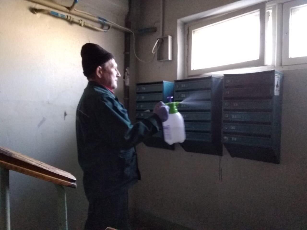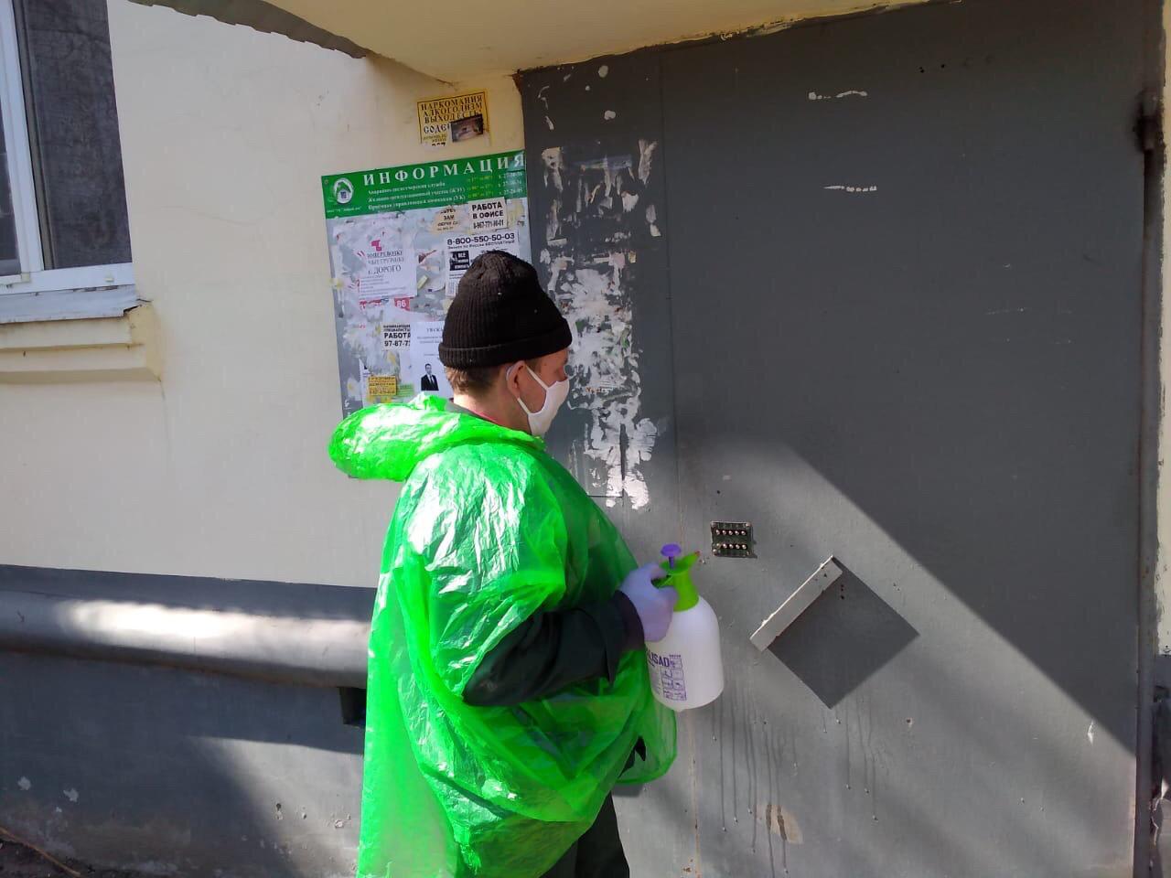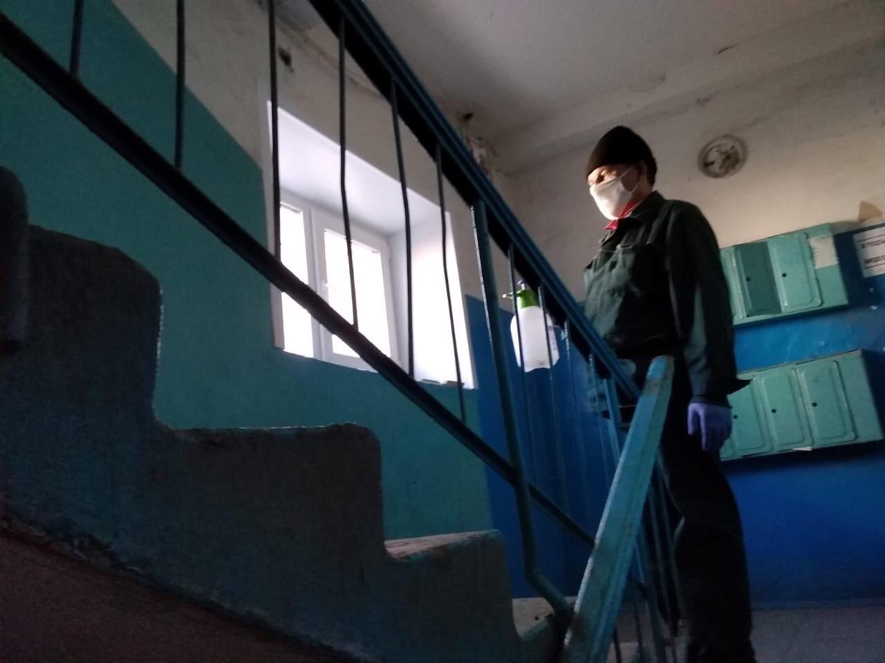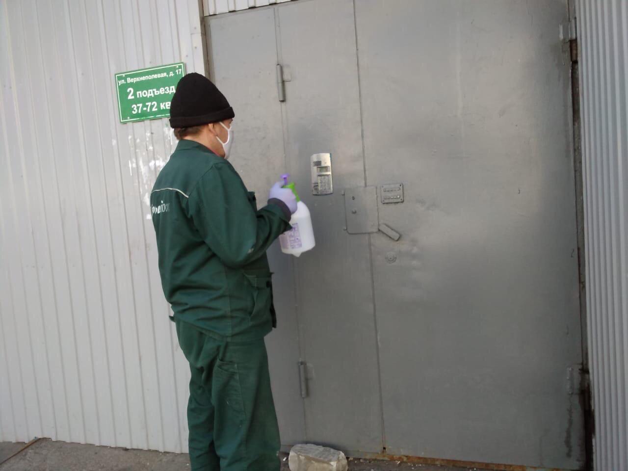 Санитарная обработка подъездов управляющими организациями в Ленинском районе: ул. Гагарина, д. 28; ул. Кролюницкого, д. 8; ул. Верхнеполевая, д. 17; ул. Северный Венец д. 12, 20, ул. Л. Шевцовой, д.55а. Следим за ходом работ.
