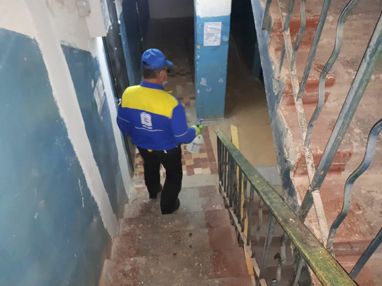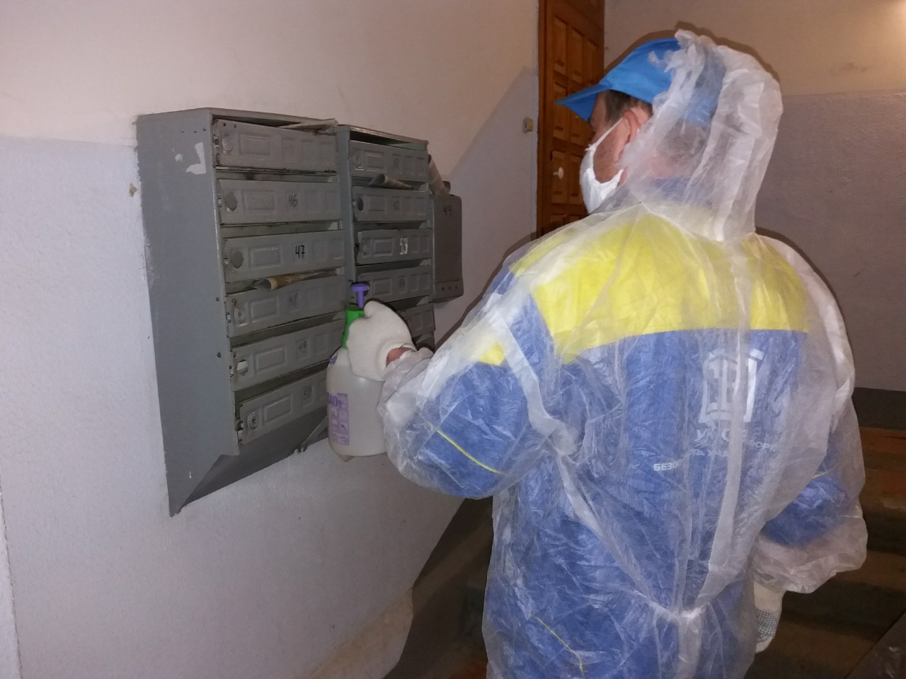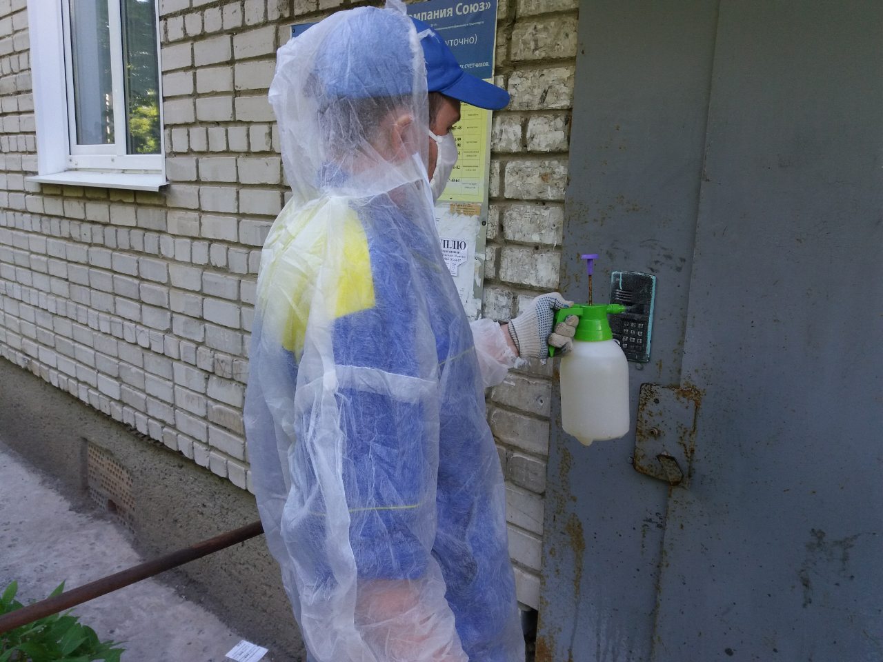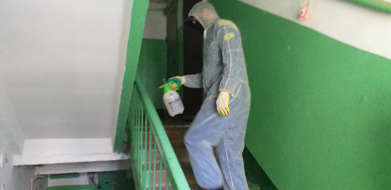 Проведение работ по дезинфекции входных групп, подъездов домов УК "ЦЭТ", УК "Свободный выбор", УК "Союз".