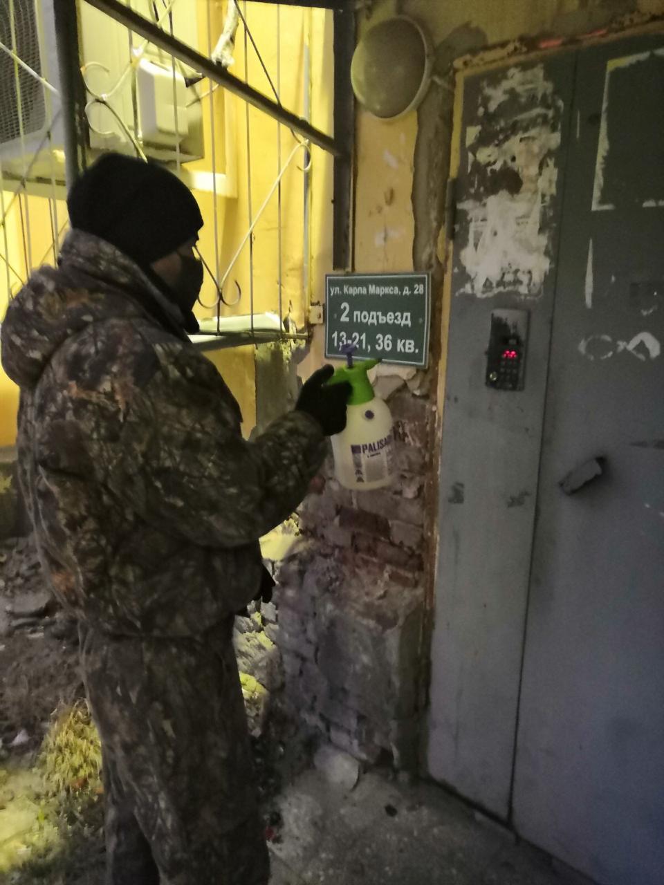 Проводится дезинфекция мест общего пользования УК "Фортком", УК "Добрый дом", ООО "ЖСК" по адресам: город Ульяновск, ул. Гагарина, д.5, ул. Уютная, д.1, ул. Карла Маркса, д.28 и д.37, пр-т Нариманова, д.100.