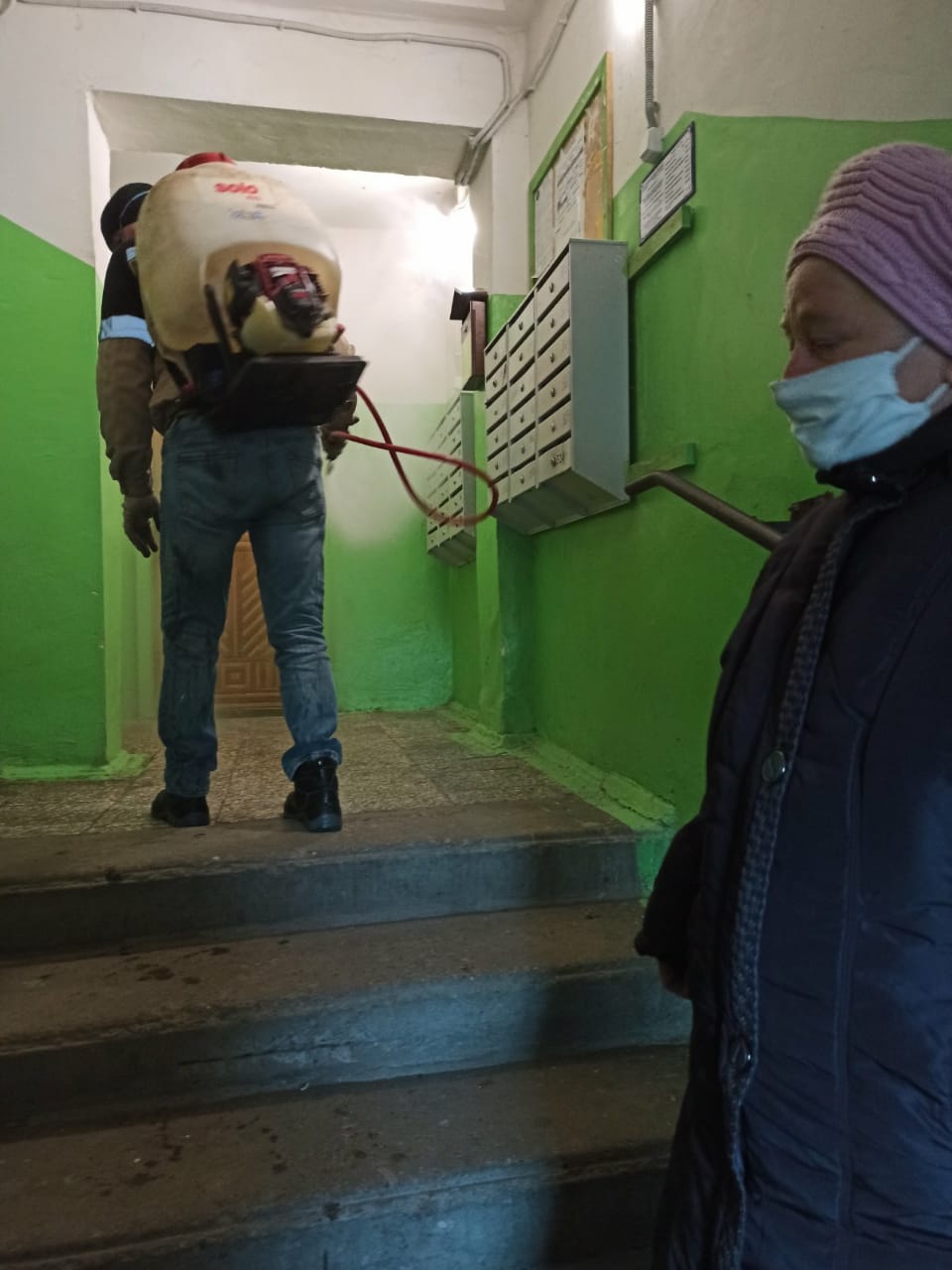 Проводится дезинфекция мест общего пользования УК "Абсолют", УК "Рассвет", ООО "СМУ" в домах по адресам: город Ульяновск, ул. Стасова, д.28, ул. Станкостроителей, д.25 и д.25а, ул. Пушкарева, д.14, ул. Полбина, д.16, ул. Врача Михайлова, д.49 и д.56, ул. Оренбургская, д.30, ул. Тельмана, д.28, пр-д Заводской, д.29.