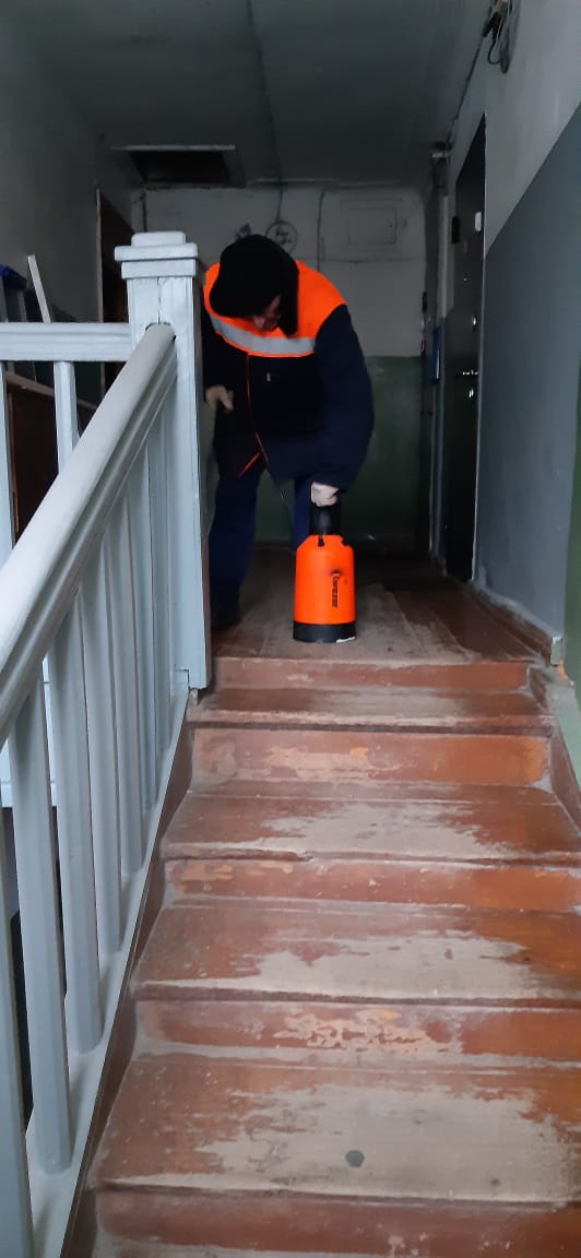 Дезинфекция мест общего пользования силами ООО "ЖСК" по адресам: г. Ульяновск, пр-т Нариманова, д.66 и д.68, ул. Гафурова, д.3.
