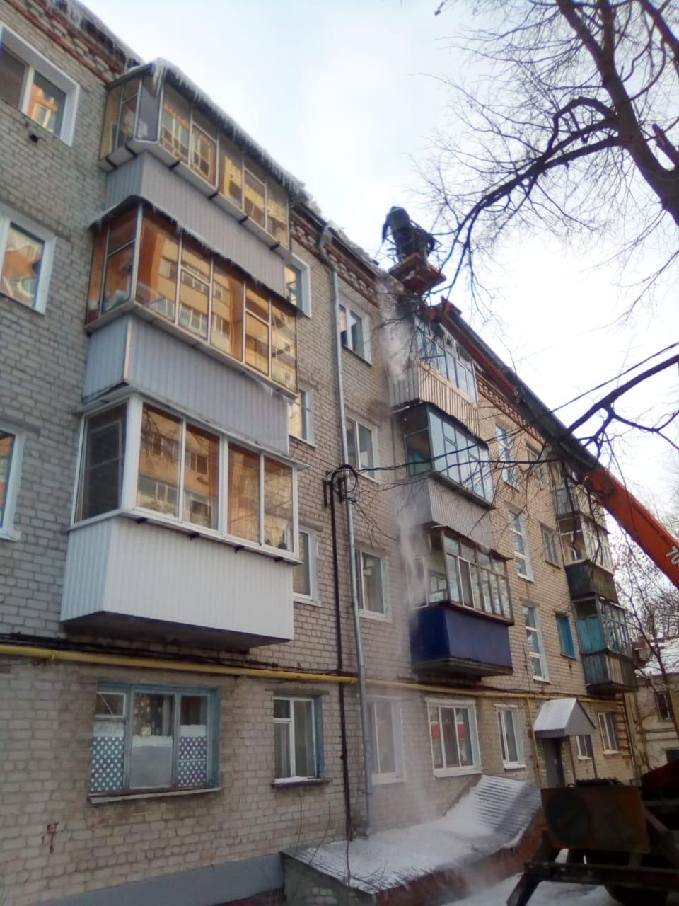 Силами ООО "Добрый дом" и ООО "Фортком" проведены работы по очистке кровли от наледи и снега по адресам: город Ульяновск, ул. Маяковского, дома 10 и 20 , ул. Гончарова, д.2, ул. Ватутина, д.30, ул. Радищева, д.160.
