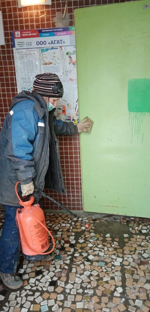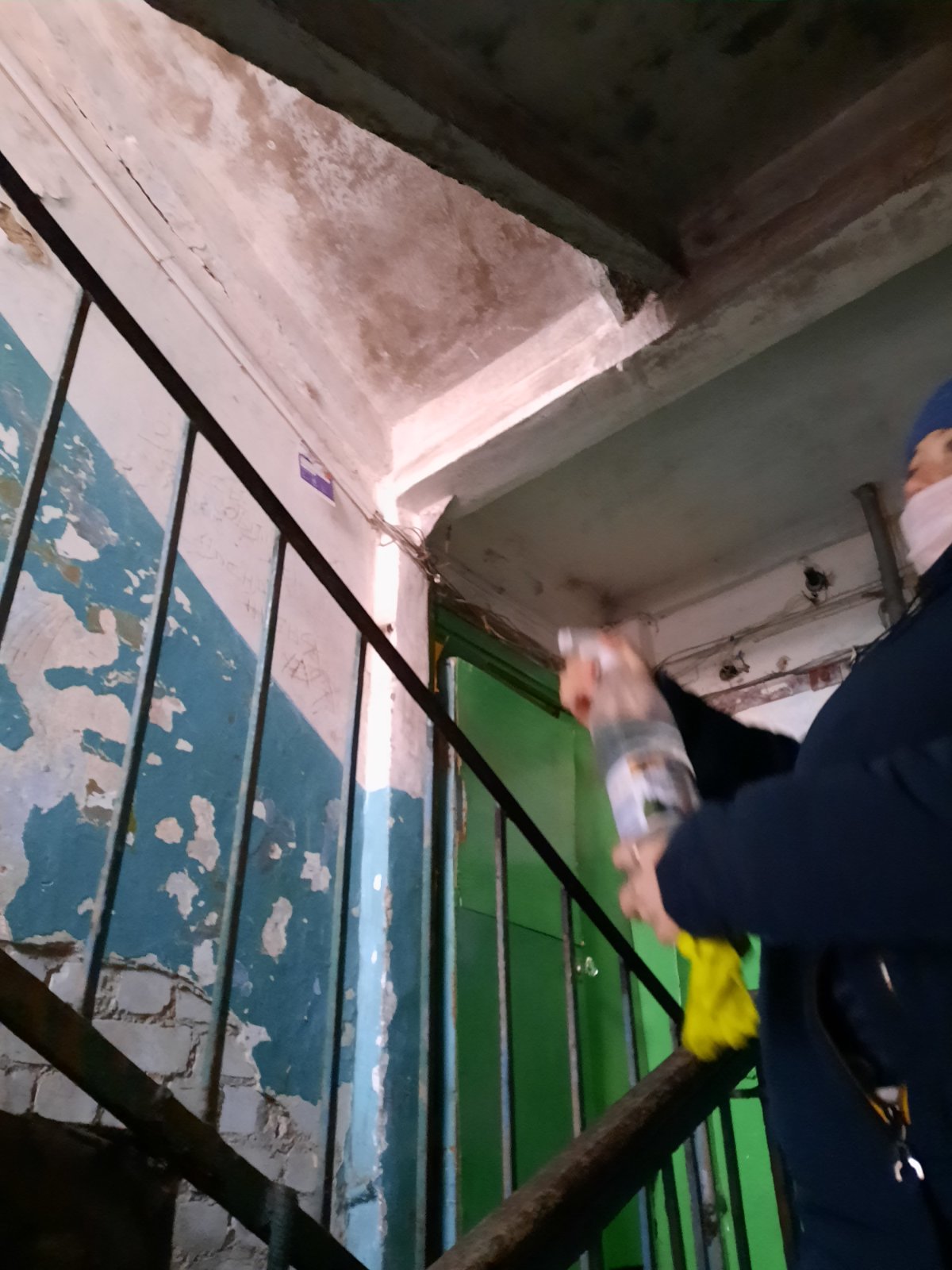 Дезинфекцию мест общего пользования в МКД провели: ООО УК Добрый Дом по ул.Средний Венец 7,23, Федерации 136 Северный Венец 12, Репина 37; ООО «ФортКом» по ул.Радищева 158,160, Симбирская 49; УК "Агат" по ул.Камышинская 4,6. Отрадная 16,18. Хо Ши Мина 13,25; ООО "УК Рассвет" по ул.Станкостроителей, 25, Пушкарева, 60, Рябикова, 7, Полбина, 1, 2, 16, Лихачева, 5.