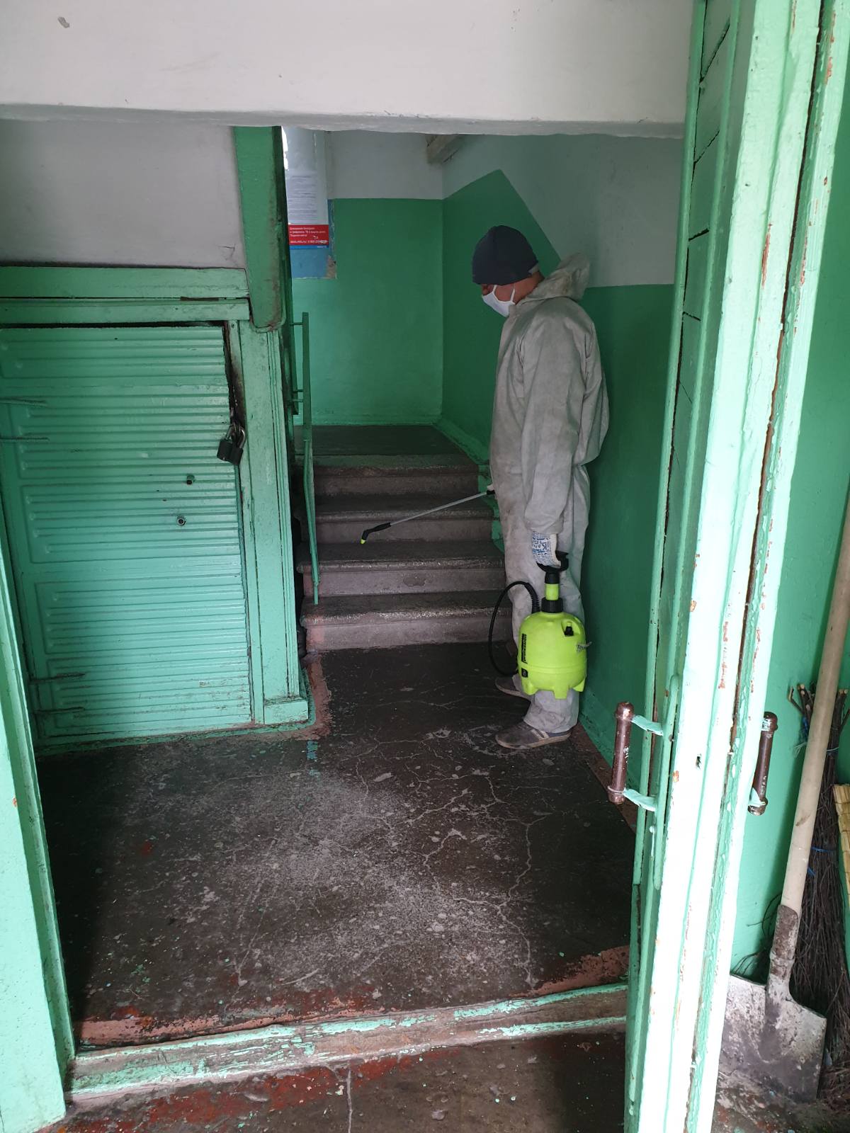 Обработка подъездов управляющей компанией Олимп по ул.Железнодорожная, 19, 25, 33; ул.Карсунская, 1