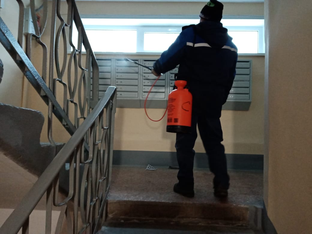 В Ульяновске продолжается дезинфекция мест общего пользования в МКД.
