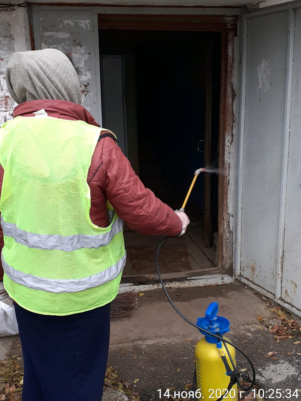 Информация о проведении работ по дезинфекции входных групп, подъездов домов. на 17.11.20г.